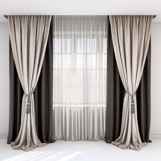 Trong phong cách thiết kế hiện đại, rèm vải cho biệt thự phù hợp nhất đó là rèm đơn sắc 2 lớp, với một lớp lụa và một lớp voan. Khi bạn kết hợp nội thất hiện đại với một bộ rèm lụa 2 lớp thì sự mềm mại của lụa sẽ gọt dũa những đường nét cứng nhắc của căn phòng. Tạo nên một không gian hài hòa đẹp mắt.